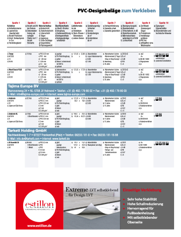 Nachtweideweg 1-7 • 67227 Frankenthal (Pfalz) • Telefon: 06233 / 81-0 • Fax: 06233 / 81-16 88 E-Mail: info.de@tarkett.com • Internet: www.tarkett.de